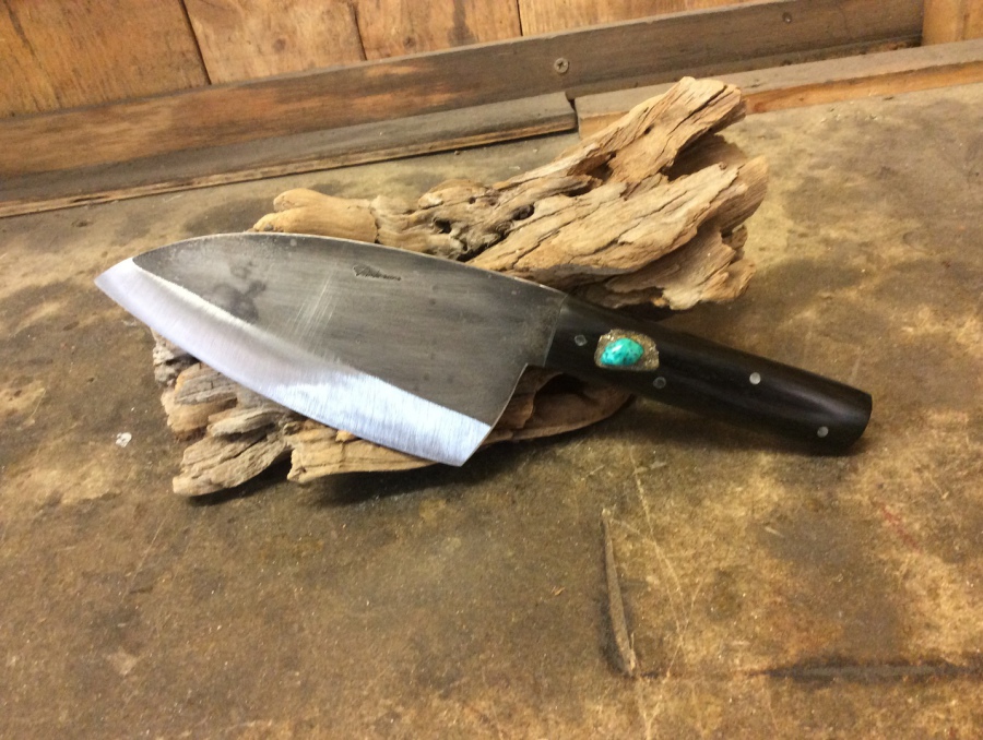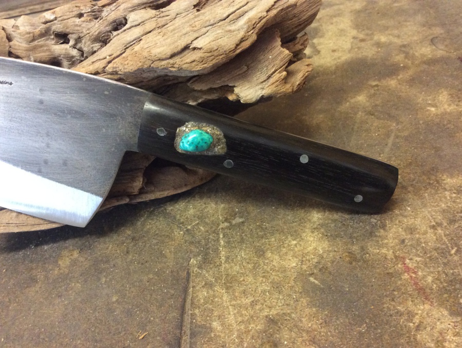 Lame en Acier Carbone de 14 cm Manche en Ebène et incrustation turquoise de 11 cm Envoi en colissimo recommandé