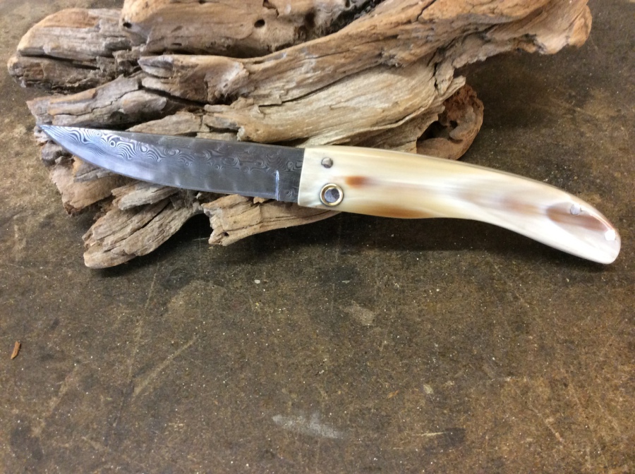 Lame en Damas de 9 cm Manche en Corne de Buffle blonde de 11,5 cm Envoi en Colissimo recommande