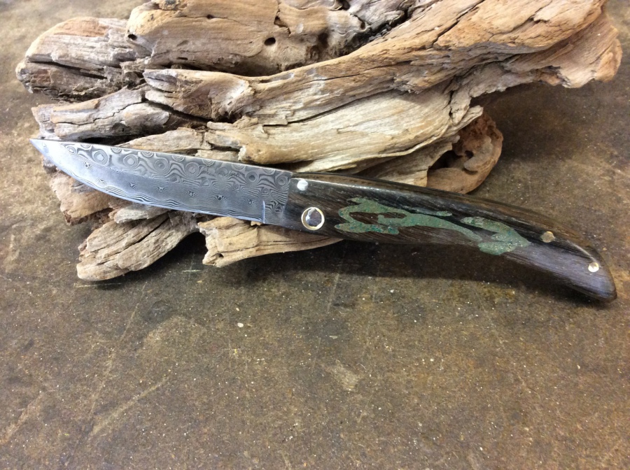 Lame en Damas de 8,5 cm Manche en Ebène royal de 12 cm Envoi en colissimo recommande