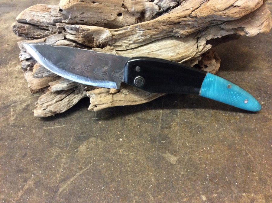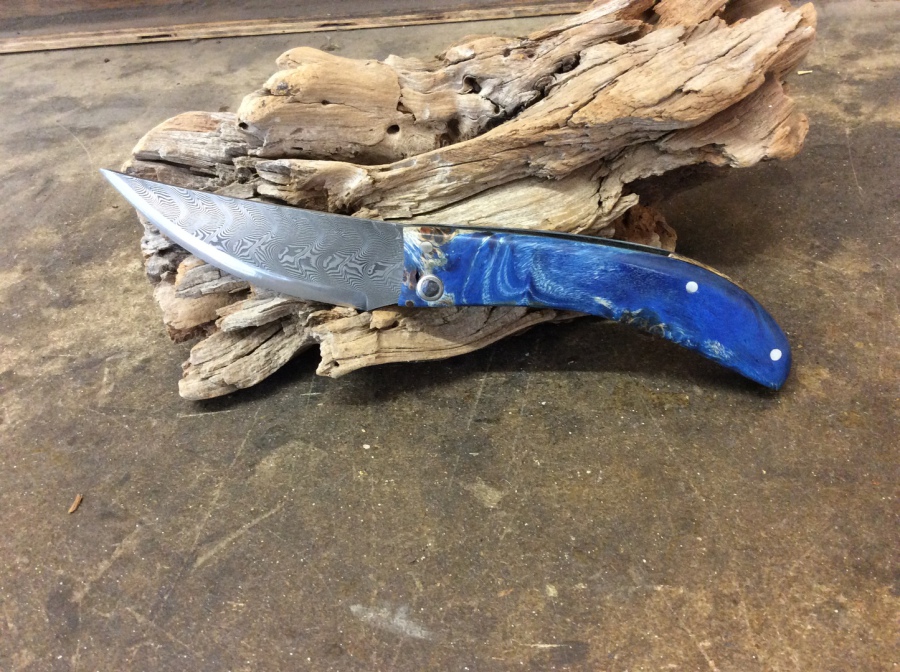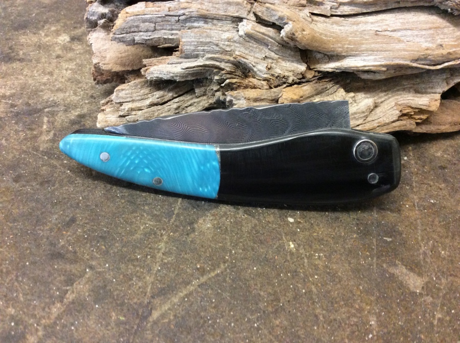 Lame en San Mai de 7,5 cm Manche en Ebene, Nacre et Lapis-lazuli de 10 cm Envoi en colissimo recommande