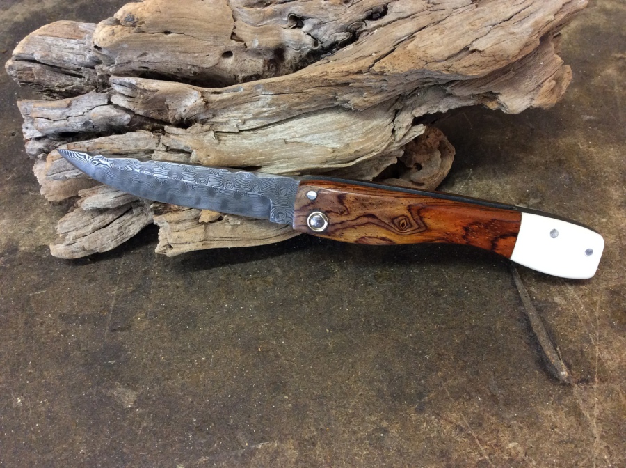 Lame en Damas de 9 cm Manche en Cocobolo et os de chameau de 11,5 cm Envoi en colissimo recommande